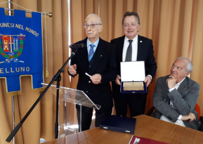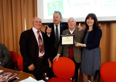 Momento toccante della 53.ma Assemblea annaule Abm la consegna di una targa ricordo a Vincenzo Barcelloni Corte e a Patrizio De Martin. Il primo ispiratore, socio fondatore, presidente per quindici anni e direttore della rivista “Bellunesi nel Mondo”; il secondo direttore, dirigente e collaboratore.