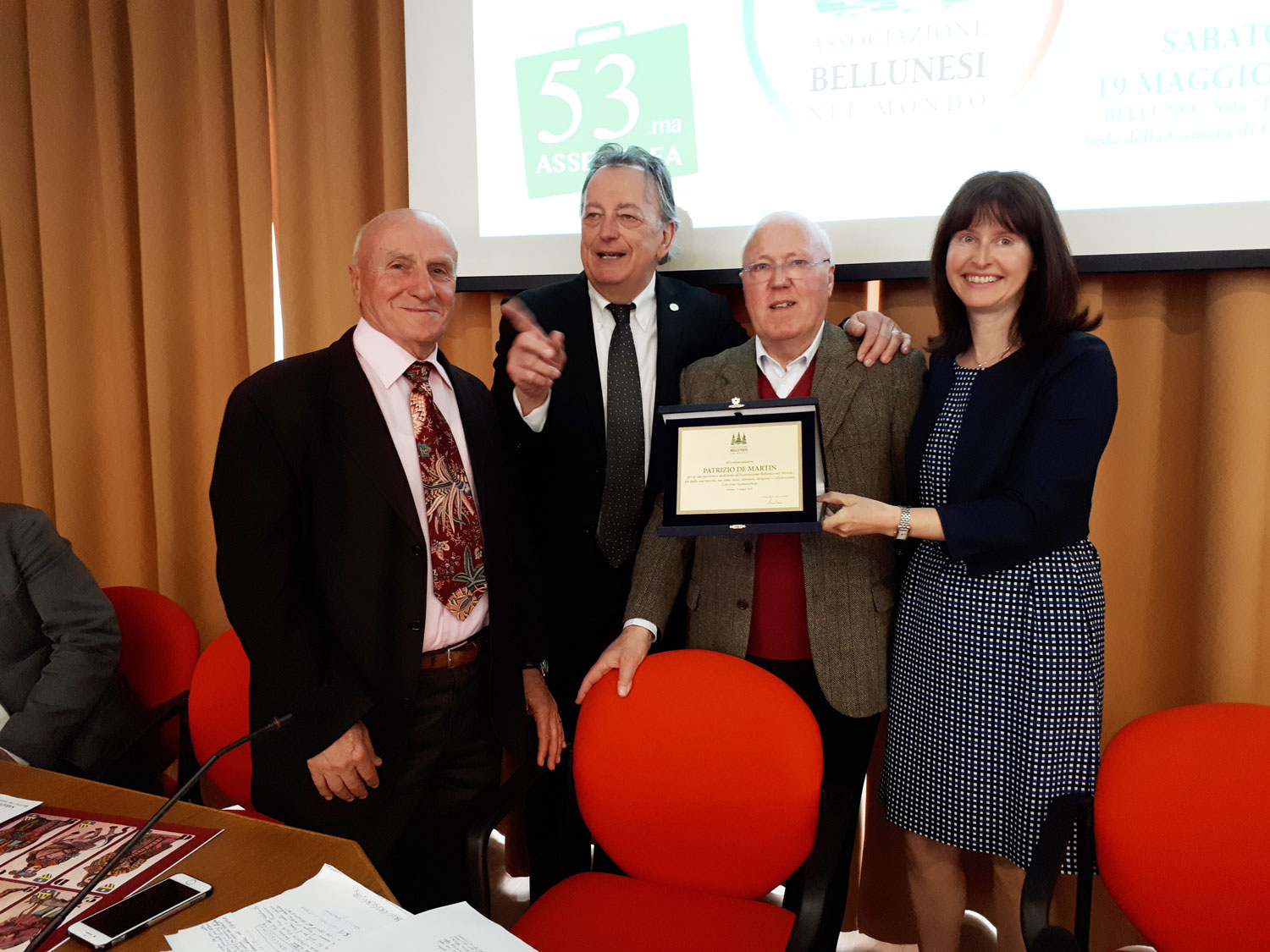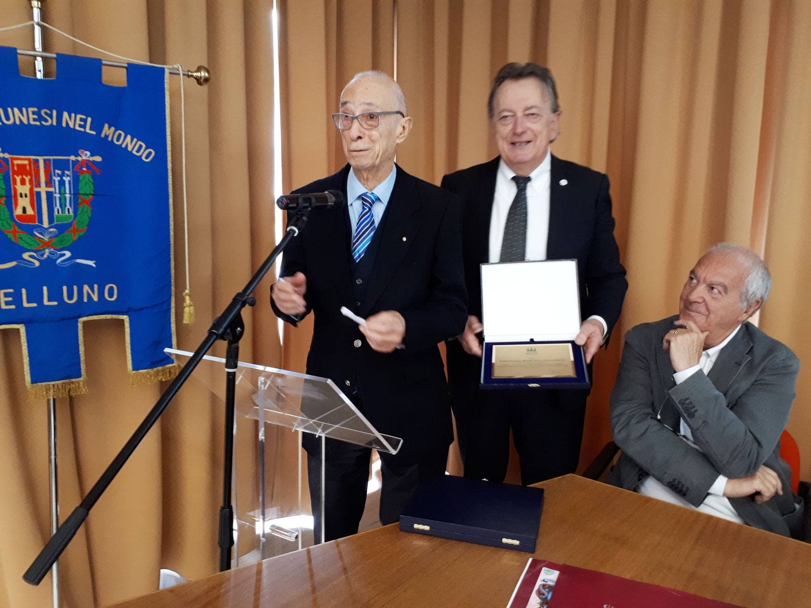 Momento toccante della 53.ma Assemblea annaule Abm la consegna di una targa ricordo a Vincenzo Barcelloni Corte e a Patrizio De Martin. Il primo ispiratore, socio fondatore, presidente per quindici anni e direttore della rivista “Bellunesi nel Mondo”; il secondo direttore, dirigente e collaboratore.